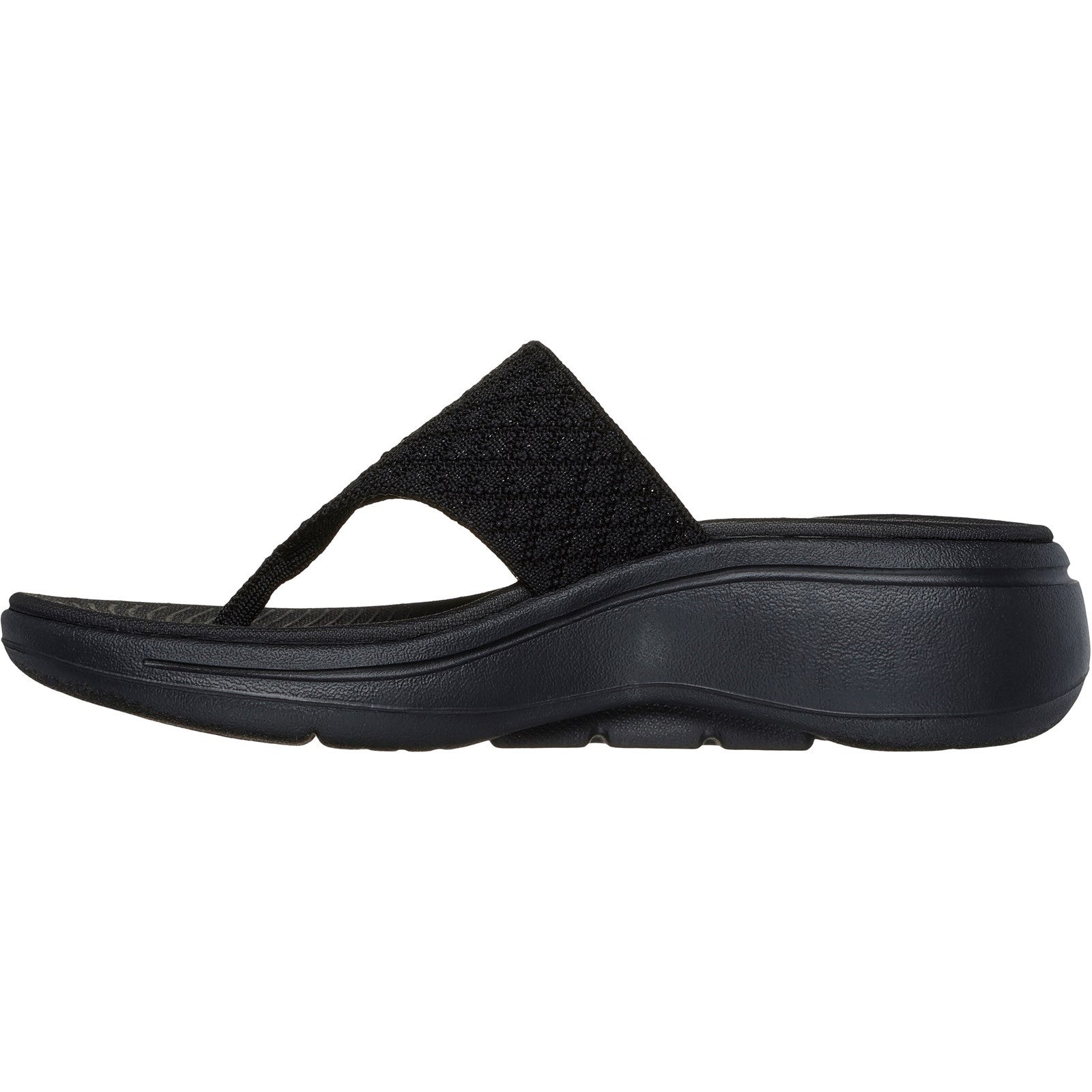 Enjoy supportive casual comfort on warm sunny days with the Skechers GO WALK Arch Fit sandal. This toe post sandal features a shimmery knit upper with lightweight ULTRA GO cushioning and an Arch Fit footbed